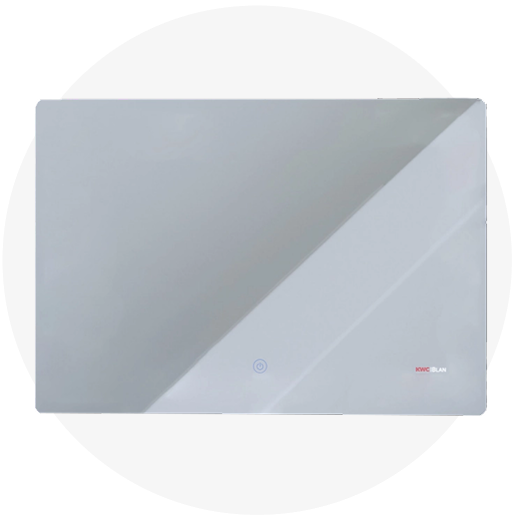 آینه دستشویی مینیمال با شیشه جام اردکان درجه یک و قابلیتهای هوشمند اختیاری مانند بلوتوث، دماسنج و هیتر ضدبخار.