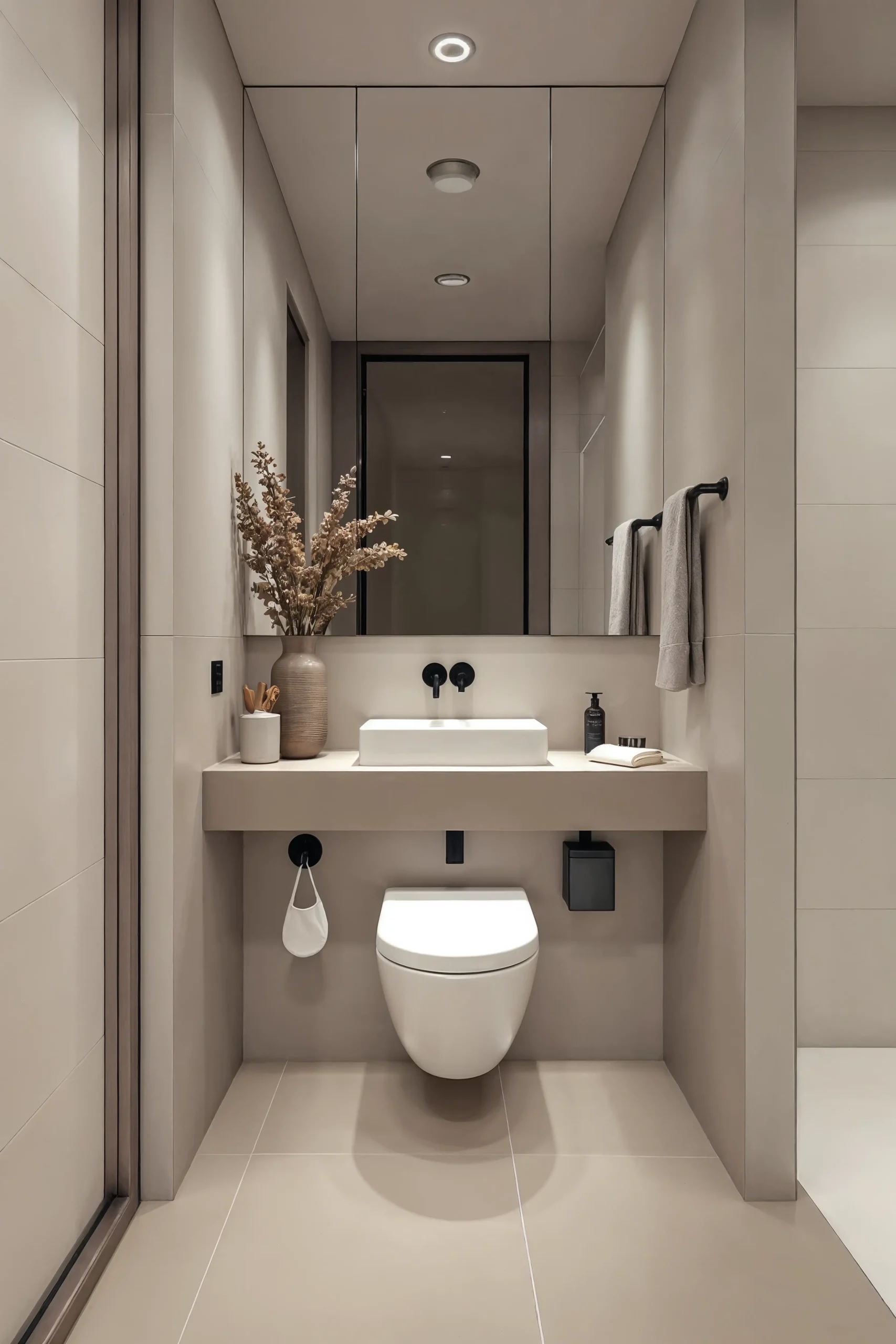 راهنما: رنگ تیره را بهصورت محدود (مثلاً قاب آینه یا کاشی تأکیدی) بهکار ببرید.