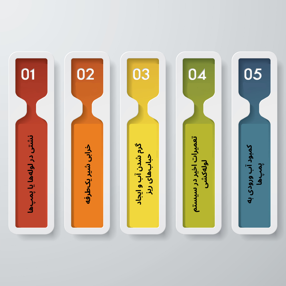 1. نشتی در سیستم لوله کشی یا پمپ ها