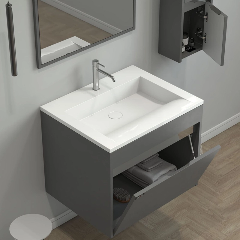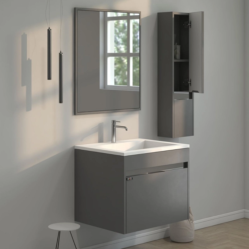 روشویی دیواری کابینتی لاکچری با بدنه پی وی سی مقاوم و ضد آب، مدل 3060 آلکا با سایز 47*59، مناسب برای دکوراسیونهای مدرن و شیک