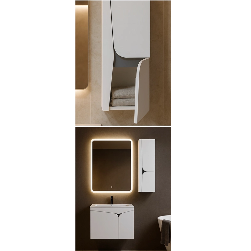 روشویی کابینتی 3080 آلکا در دو رنگ کرم و سفید با طراحی مینیمال مناسب سرویس بهداشتیهای لوکس به همراه باکس کنار آینه