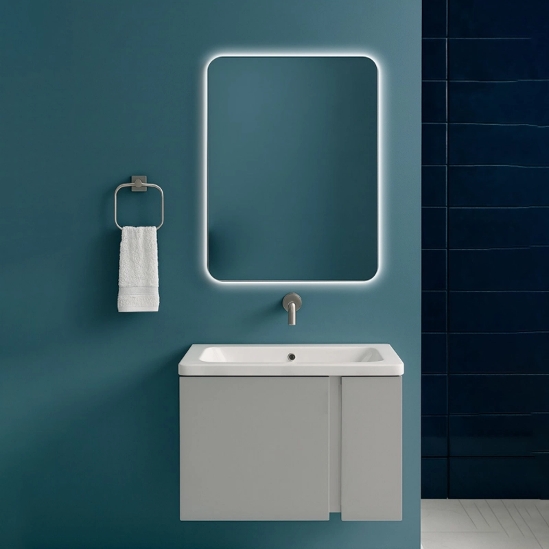 فولست با طراحی مینیمال و جذاب در دو رنگ طوسی و سفید با سنگهای کوآرتزی سنگسان باتیس ضد خش و باکتری بدون تغییر رنگ با ضمانت تضمینی توسط برند با آینه چراغدار حرکتی و فضای مناسب برای وسایل سرویس بهداشتی