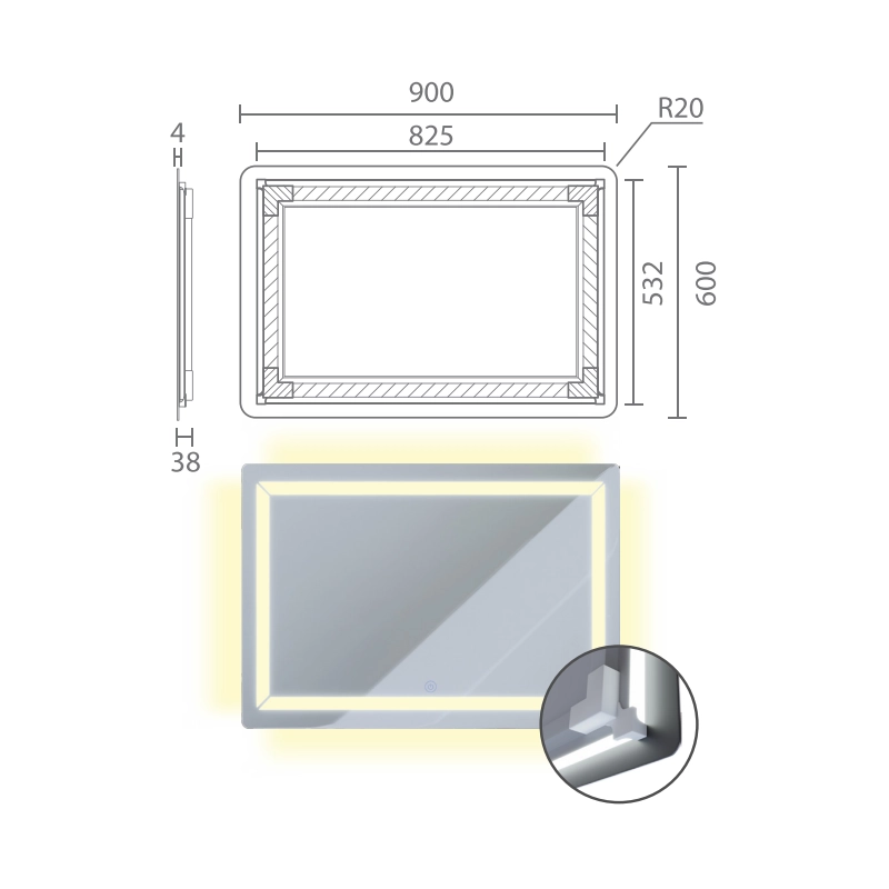 آینه پشت نوردار ,آینه سندبلاست ,روشنایی ,روشنایی لمسی (تاچ) |