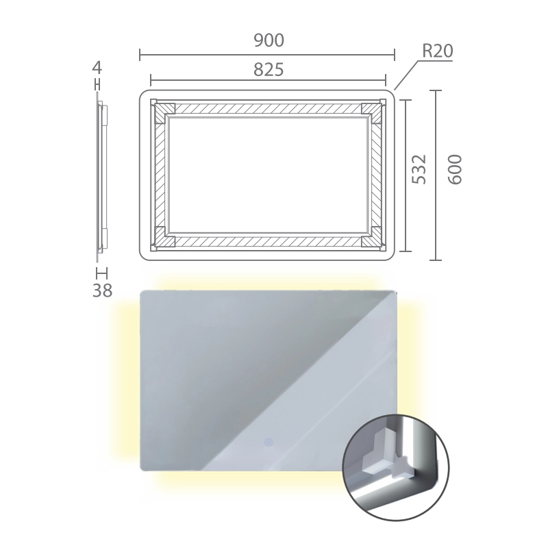 آینه پشت نوردار ,روشنایی ,روشنایی لمسی (تاچ) |