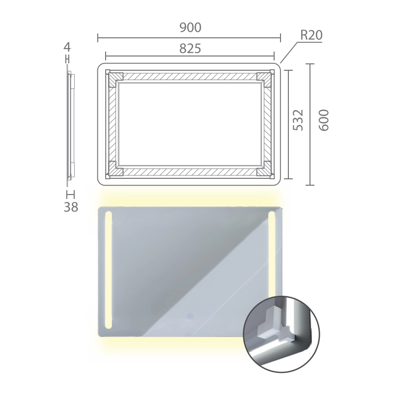 آینه پشت نوردار ,آینه سندبلاست ,روشنایی ,روشنایی لمسی (تاچ) ,ضدبخار (هیتر دار) |