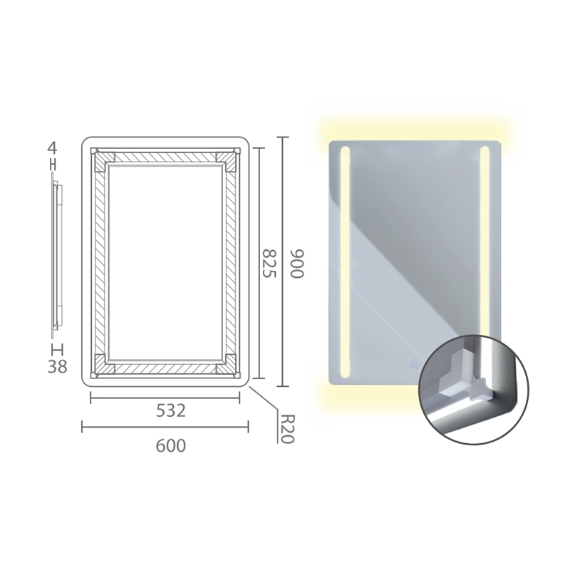 آینه پشت نوردار ,آینه سندبلاست ,روشنایی ,روشنایی لمسی (تاچ) ,ضدبخار (هیتر دار) |