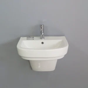 روشویی نیم پایه گاتریا مدل آی با جنس مقاوم و ضد رطوبت، طول عمر بالا و نگهداری آسان را تضمین میکند. این محصول برای سرویس بهداشتیهای کوچک مناسب است.