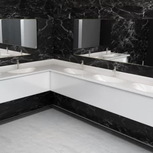 روشویی عمومی گلد با طراحی شیک و مدرن، سفارشیسازی شده برای فضاهای لوکس رستوران و عمومی. کیفیت عالی و مقاوم در برابر آب، با خاصیت ضد باکتری برای حفظ بهداشت بیشتر