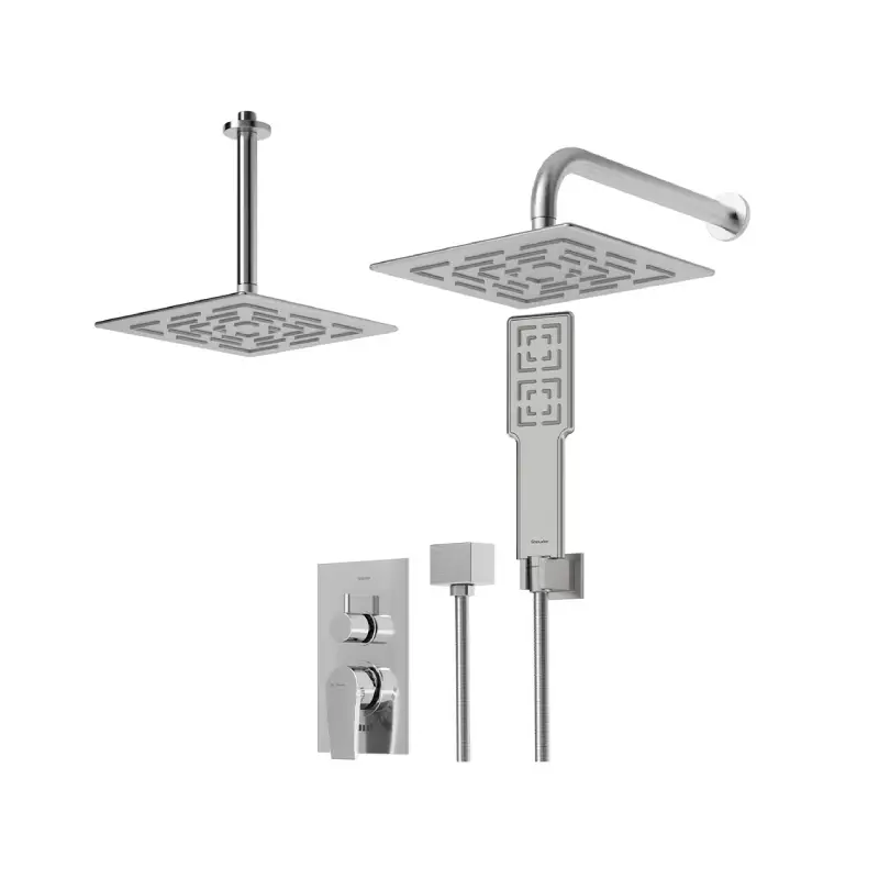 دوش توکار سقفی/دیواری با شیر اهرمی، کارتریج سرامیکی ۳۵ میلیمتری و پرلاتور کممصرف