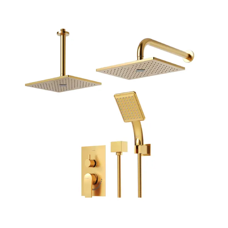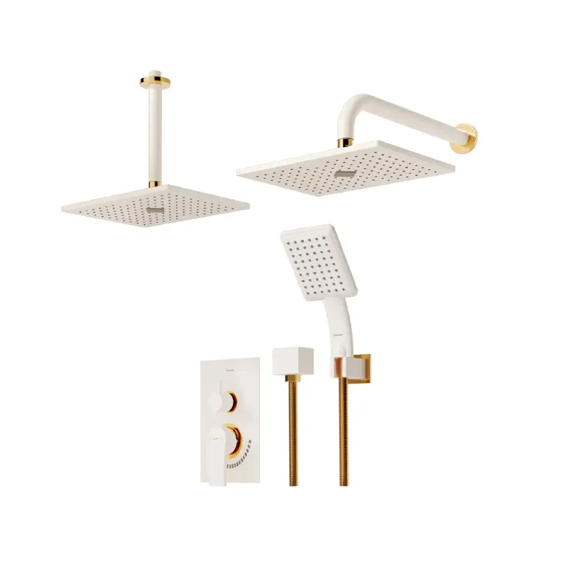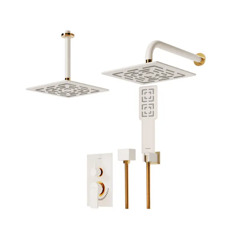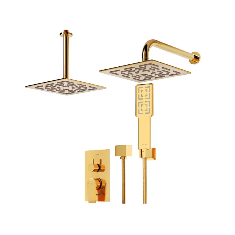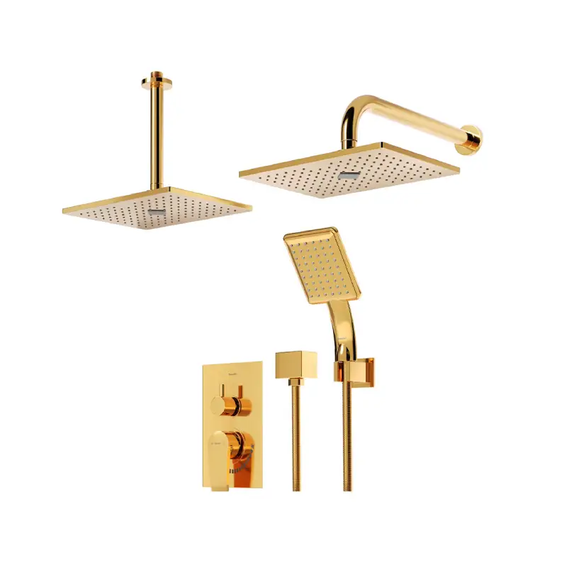 دوش توکار حمام در 2 مدل سقفی و دیواری با بدنه برنجی و رنگبندی متنوع به همراه کارتریج سرامیکی مقاوم