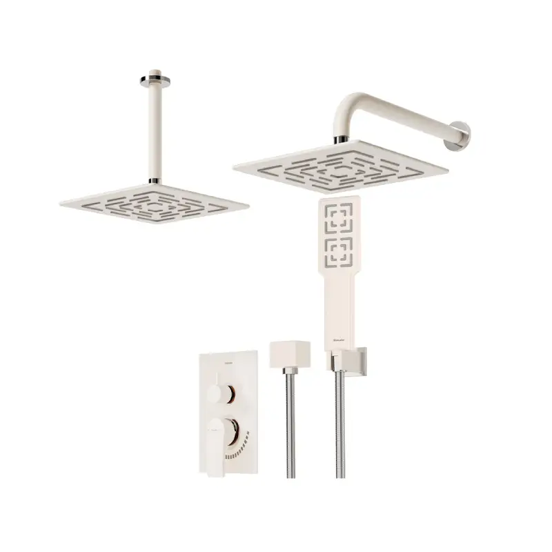 دوش توکار اهرمی شودر در دو مدل سقفی و دیواری، مقاوم در برابر رسوب و دما، با پرلاتور کاهنده مصرف آب در رنگهای متنوع