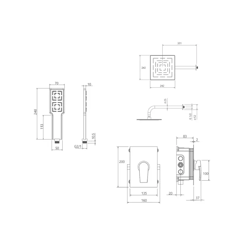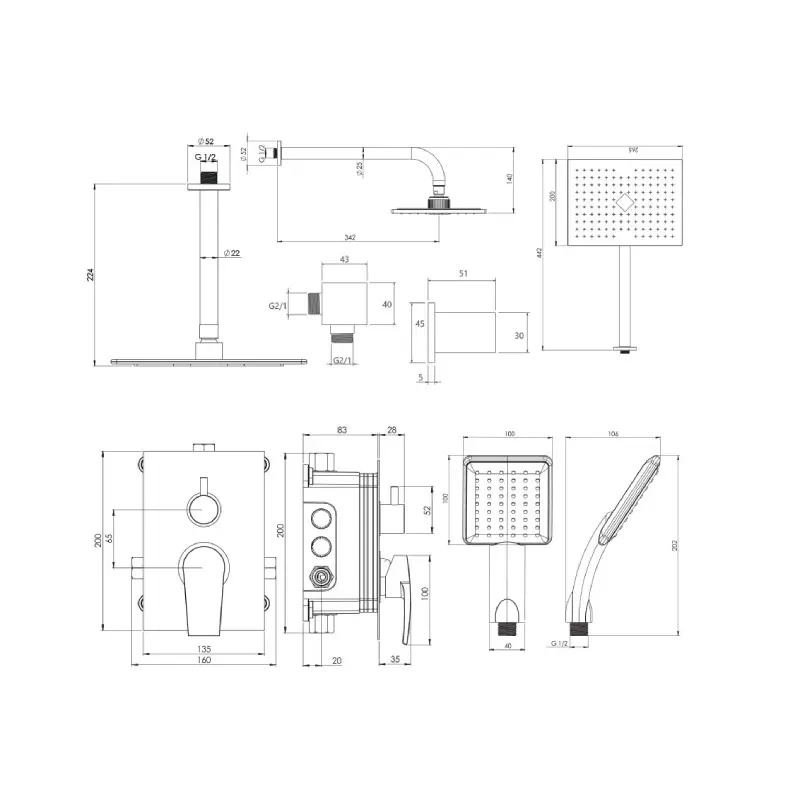 - شامل دوش سقفی/دیواری، تلفنی و شیر اهرمی