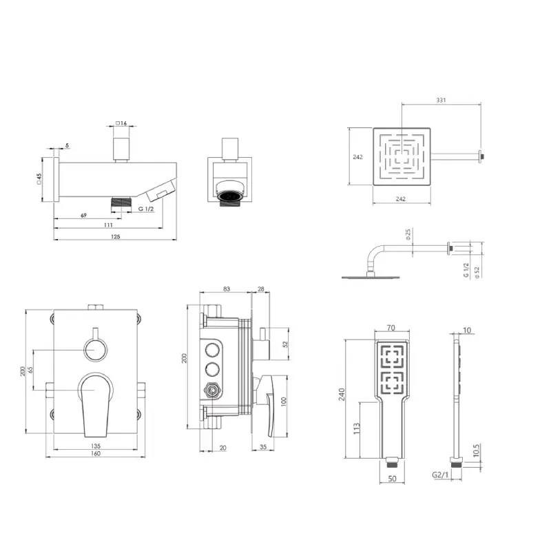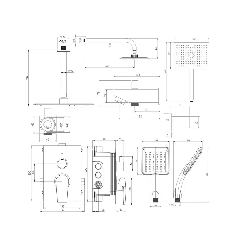 - شامل دوش سقفی/دیواری، تلفنی، وانپرکن و شیر اهرمی
