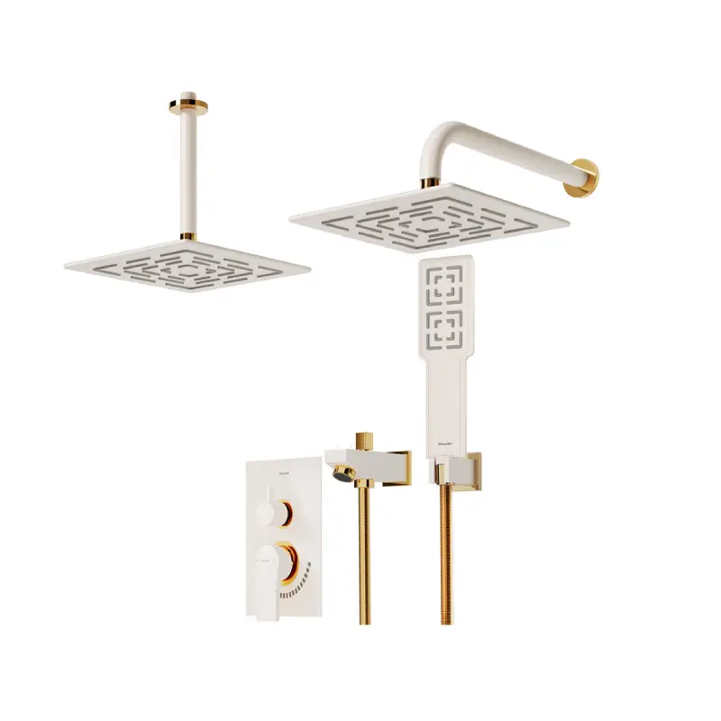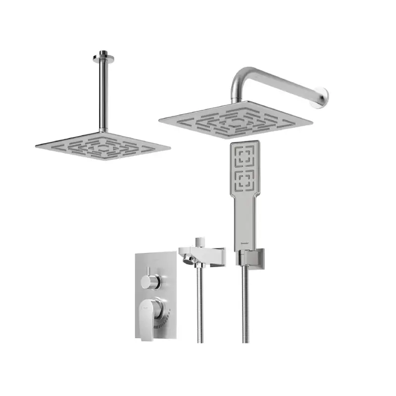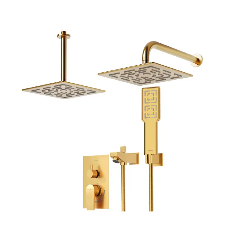 ست دوش حمام توکار با بدنه از آلیاژ برنج خالص و طراحی ارگونومیک شامل دوش سقفی/دیواری، تلفنی و شیر اهرمی با گارانتی و ضمانت اصالت کالا