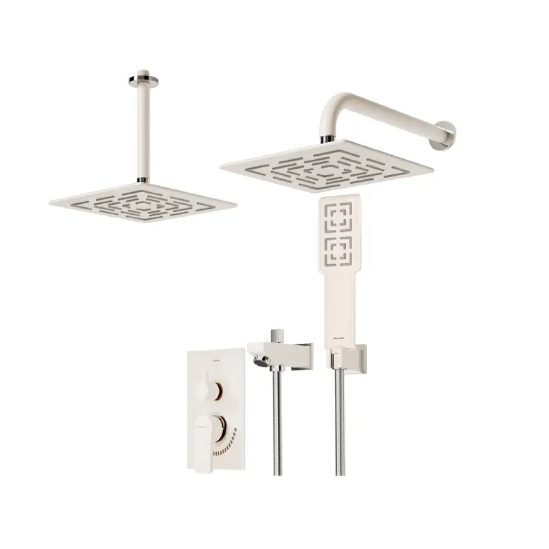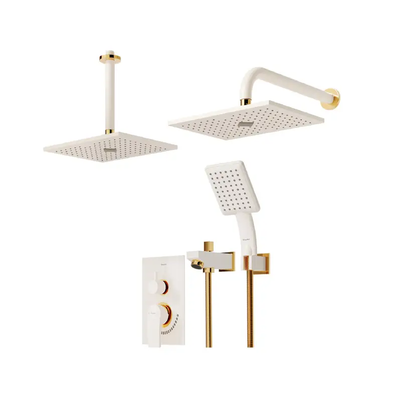 دوش توکار اهرمی شودر در دو مدل سقفی و دیواری، مقاوم در برابر رسوب و دما، با پرلاتور کاهنده مصرف آب در رنگهای متنوع